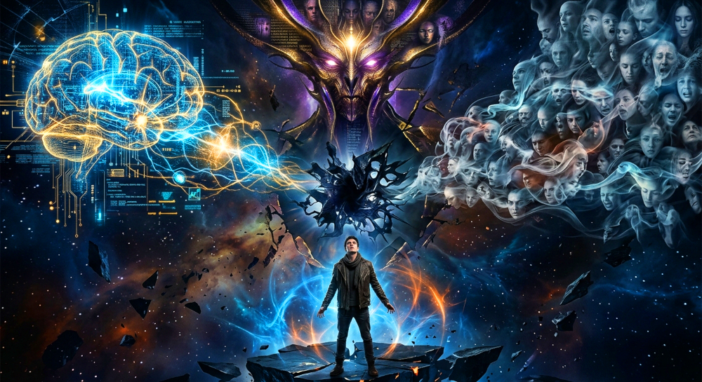 Perhaps the most honest way to describe this process is not in purely scientific or mystical language, but in something that sits between the two. What we are witnessing is a continuous and often invisible conflict of ideas competing for dominance across the great terrain of human thought… A kind of psychic war: the great human Psychic War.